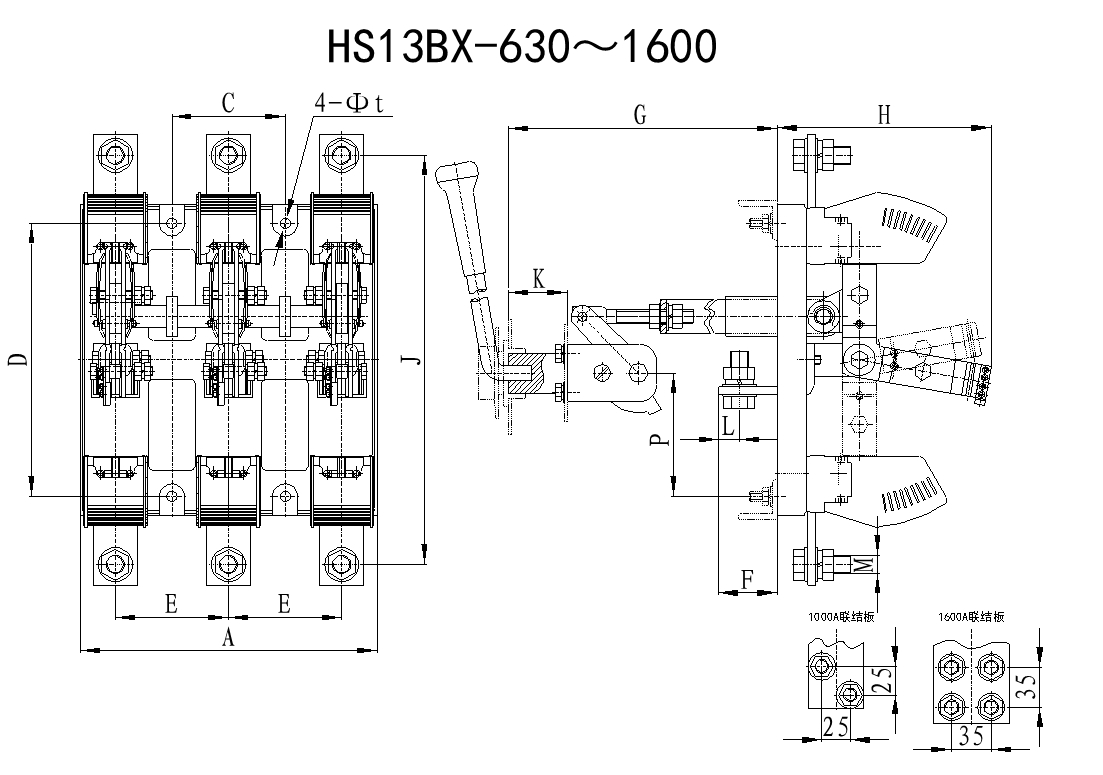HS13B(BX)系列刀形轉(zhuǎn)換隔離器適用于額定工作電壓為交流400V,額定頻率50Hz,額定工作電流至1600A。主要用于工業(yè)企業(yè)的配電設(shè)備中,用于接通或分?jǐn)嗑€路或者作為隔離開關(guān)之用。